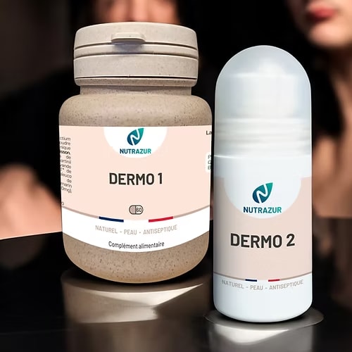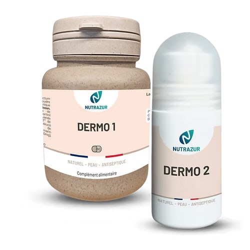 Résolvez tout vos problèmes de peau avec le pack Dermo. En huile, à utiliser directement sur les parties à traiter. Ou en gélules pour un traitement interne lors d'une fragilité de peau générale.